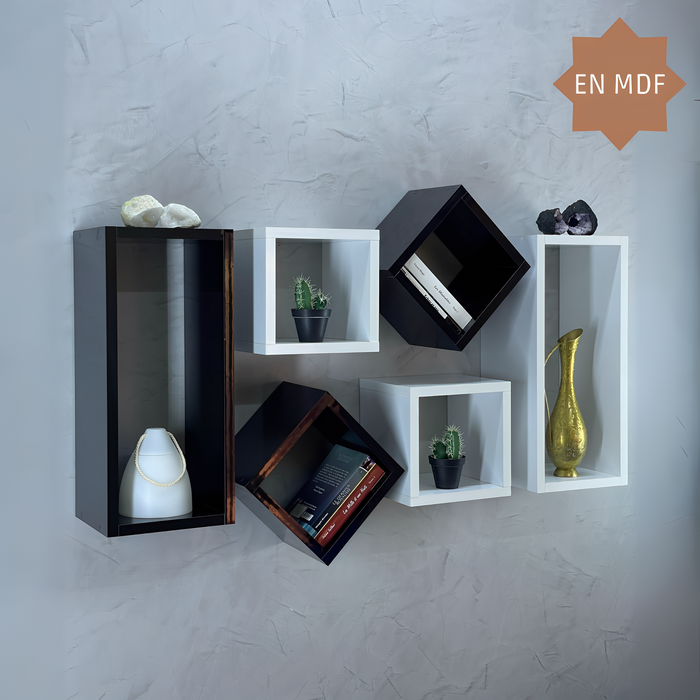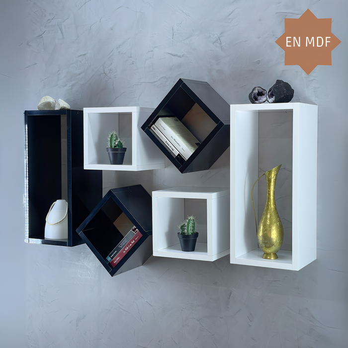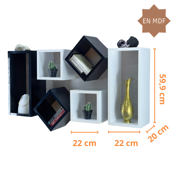 Étagère murale BABI 6ps – blanc/Noir Étagère murale BABI 6ps – blanc/Noir